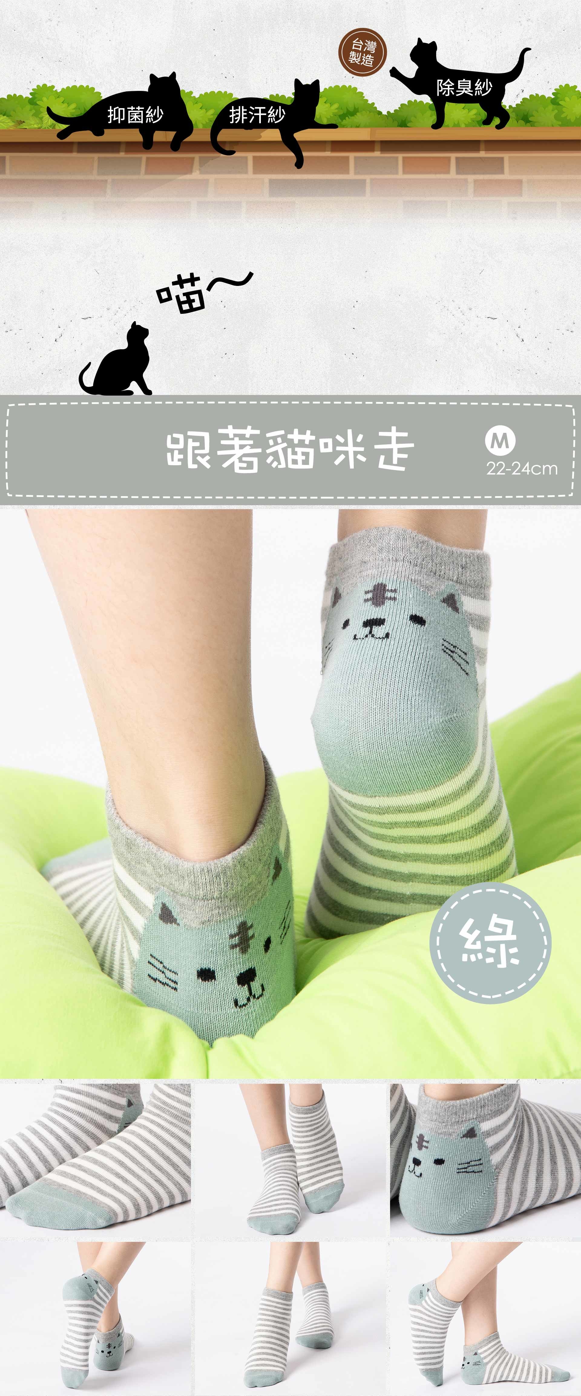 aPure's Cute Meow Collection, Cat's Stalking Green Low Cut Socks , are the high-elasticity, fast sweat absorption & moisture releasing, no smell Socks ! Wearing it to Keep the kitties company Everywhere even Outdoors!