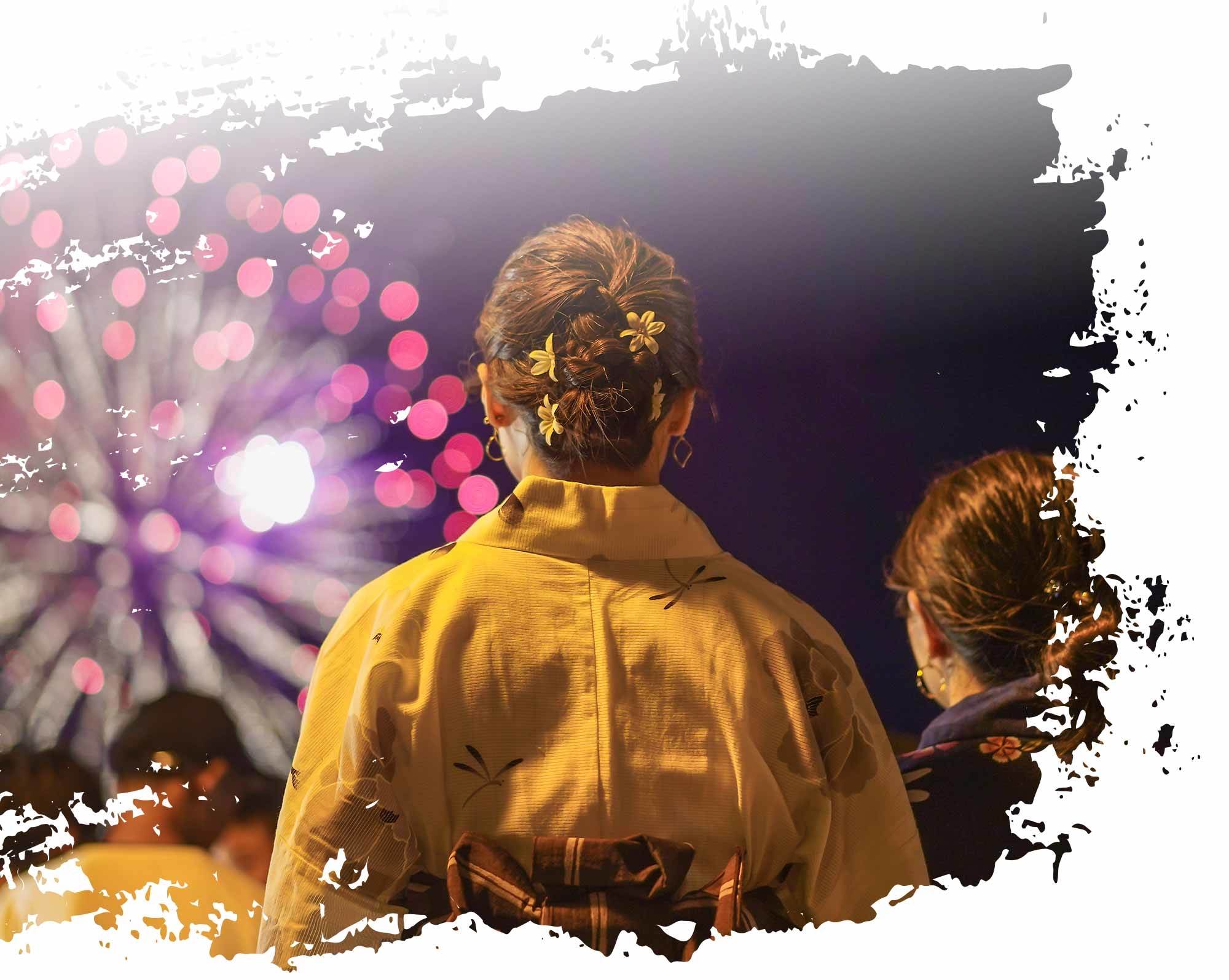 入夜後,公園廣場湧入穿浴衣的男女,手搖著涼扇,大啖屋台販售的小吃冷飲,眺望在河邊施放的天神祭奉納煙火。一年一度的花火大會,是最適合告白的場景,讓曖昧昇華成愛情。