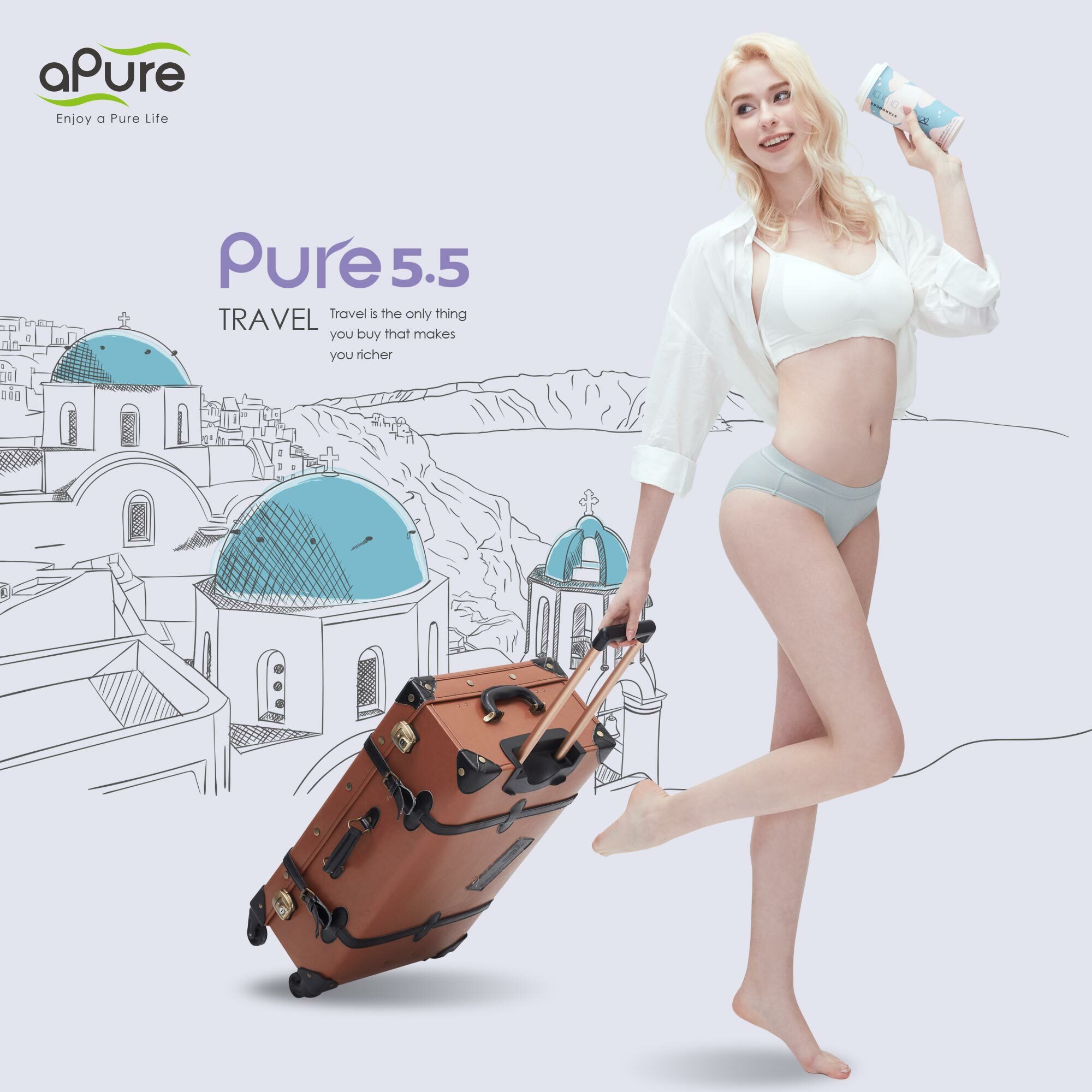Pure5.5 酸鹼平衡褲呵護私密肌,揮別異味與分泌物困擾,出遊好心情。和 Pure5.5 Blue 一起輕裝上路、走闖世界,把美好風景收納眼底!