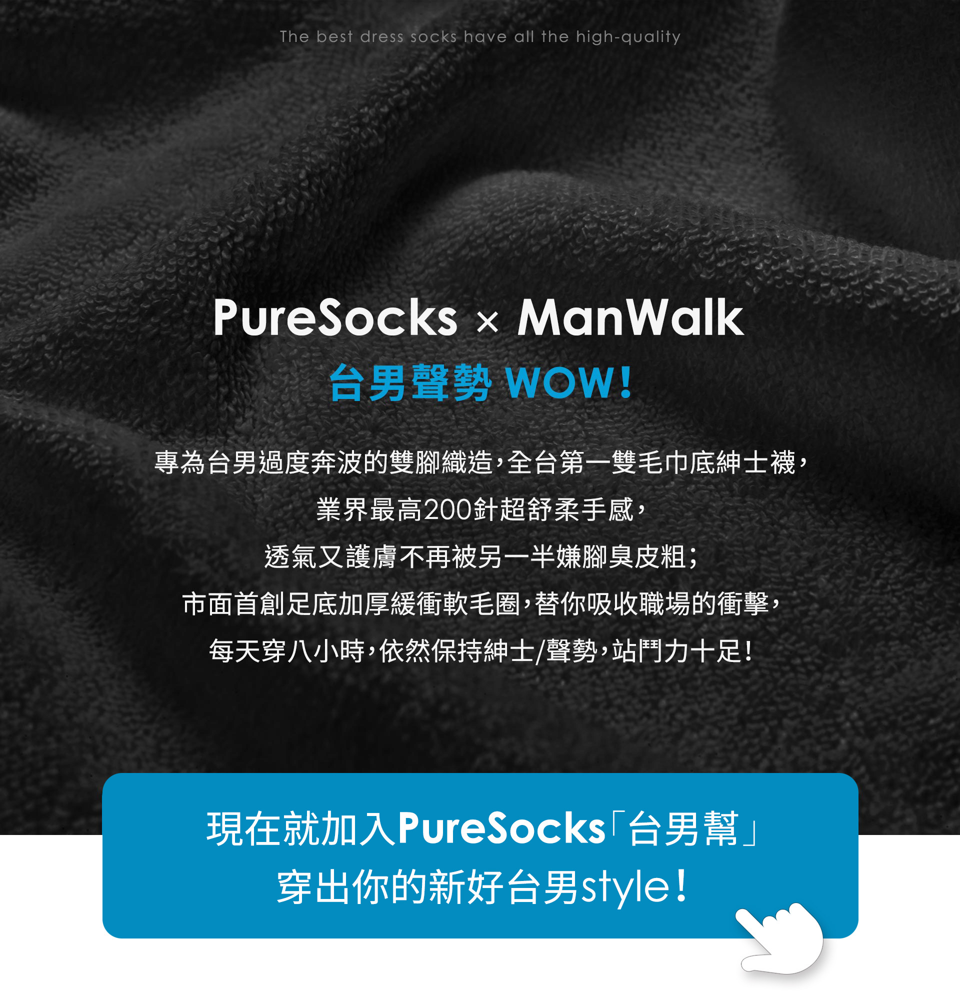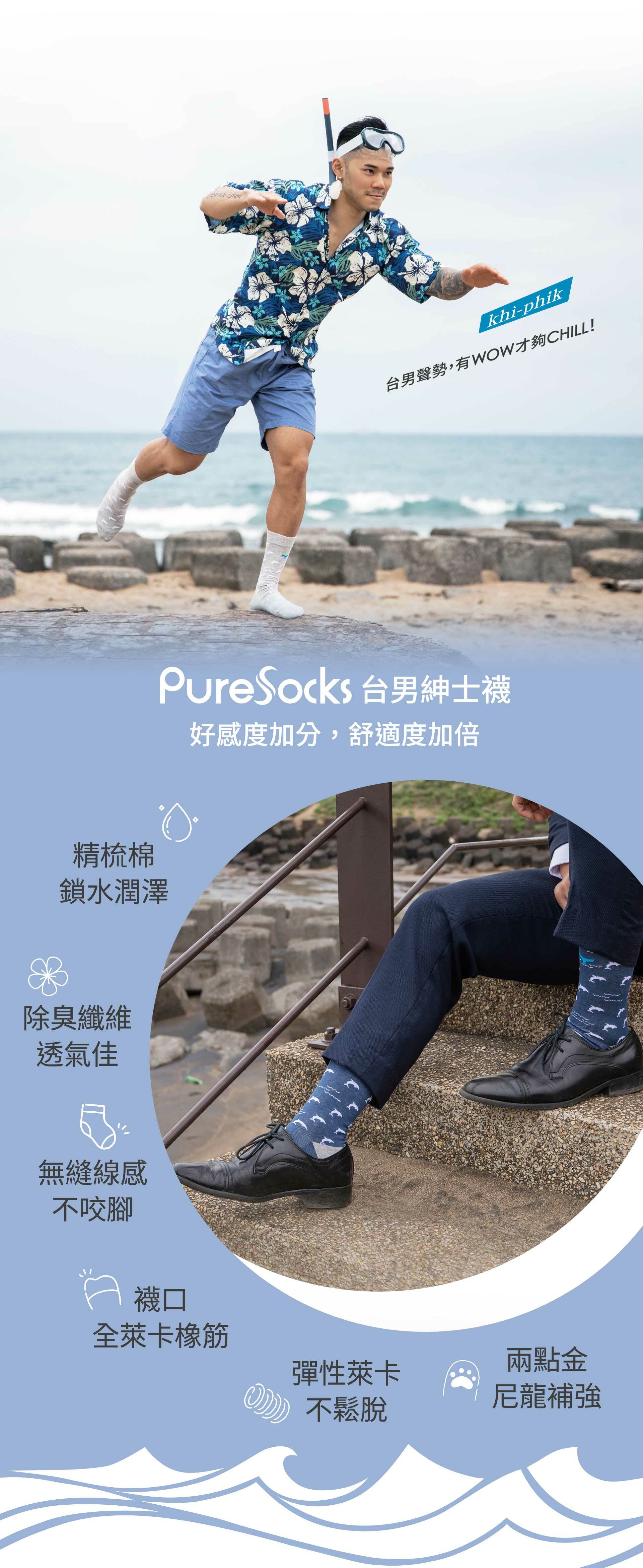 誰說台男不會打扮,你只是大而化之,不修邊幅,要認真起來,也是帥到沒朋友。現在就加入PureSocks「台男幫」,穿出你的新好台男style!